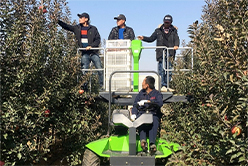 針對果樹整枝修剪、花果管理、采收運輸?shù)拳h(huán)節(jié)和農(nóng)藝要求,研制果園采摘平臺,重點解決農(nóng)機(jī)農(nóng)藝整機(jī)配置、升降和伸展、傾角(坡地)和人機(jī)安全等技術(shù)難題,開發(fā)了輪式和履帶式輕便型、多動能型果園作業(yè)平臺,果園機(jī)械全液壓驅(qū)動,配有電動剪、采摘袋、標(biāo)準(zhǔn)果箱等功能裝置。